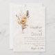 Este maravilhoso convite de casamento é a maneira perfeita de anunciar seus núpcias em um estilo elegante e boêmico. O convite apresenta uma ilustração em aquarela de flores silvestres em tons de cores autunares, colocados contra um fundo de pergaminho de marfim. O texto é impresso em uma letra simples, sans serif, e o efeito geral é de beleza subestimada.