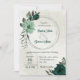 Convite de casamento único com flores verdes românticas, verdes verdes e verdes macios e folhas verdes e coroa coroa botânica. PARA MAIS PRODUTOS CORRESPONDENTES, clique na coleção acima ou entre em contato comigo.