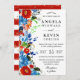 Convites Casamento de Flores Vermelhos e Azuis com Cores