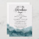 Elegante rústico, a cor-d-água das árvores cai convite para casamento, com um texto escrito: deixe a aventura começar. Para aqueles que amam uma floresta romântica sonhadora vibe pela sua cerimônia e celebração.