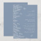 Este belo convite para o casamento exumenta a beleza serena com a sua fronteira botânica desenhada à mão de delicados galhos brancos e folhas colocadas contra um fundo azul empoeirado. Seus nomes e todos os detalhes do evento são apresentados elegantemente em fontes claras e refinadas. É um design verdadeiramente charmoso e pacífico, perfeito para dar um tom tranquilo e memorável para o seu dia especial.