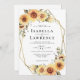 Pintado à mão, aquarela, convite floral de casamento, que inclui girassol pintado à mão e verde com moldura de folha de ouro digital. Convite para casamento floral elegante e moderno. Você pode personalizar o texto, o estilo da fonte, a cor e o tamanho em frente e atrás do convite. Você é bem-vindo para me contatar para encontrar itens correspondentes.