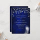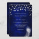 Elegante e muito único, este convite de casamento apresenta um padrão de folhas de carvalho prateadas caindo no topo, com uma pena de pavão prateada brilhante na parte inferior. Seu texto personalizado está em prata no centro. As imagens e o texto são colocados em um fundo azul real abstrato sutil que parece quase brilhar. A parte traseira do convite tem o mesmo fundo azul abstrato.