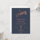 Crie um convite personalizado e esplêndido, chique e minimalista para seu casamento ou aniversário. Este convite para o casamento apresenta um roteiro de caligrafia espaçoso e bonito escrevendo em letra falsa de folha de ouro rosa com fundo azul marinho. Você pode personalizá-lo facilmente com seu próprio texto e personalizá-lo de acordo com o seu gosto. Por favor, note: "-The- Wedding" e a trabalho de arte do anel não podem ser editadas. Nota complementar: O rosa de folha de ouro é um efeito de folha de ouro falso rosa. Não é a folha de ouro de rosa a quente.