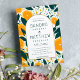 Convite de casamento botânico de citros de laranja, moderno verão. Este belo convite para aquarelas florais impressas à mão é perfeito para qualquer garota de vidro elegante e sofisticada. Este design é ideal para um evento de festa elegante e de tendências. Personalize este design com sua própria mensagem e informações personalizadas. Todas as designs são impressas.