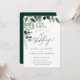 Verde botânico de cor d'água elegante, convite para casamento. Caligrafia de tendências "o Casamento de", e coordenação de cor verde esmeralda sólida.