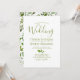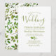 Convites de casamento de jardim selvagem elegante com um modelo de casamento moderno em verde oliva com um único galho de árvore. No verso há uma dispersão de folhagem verde exuberante fresca pintada em estilo de aquarela.