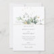 Coloque a palco para os vossos núpcias com este convite de casamento caprichoso, que equilibra a beleza natural da água-coloração verde com a sofisticação dos dourados. A design apresenta um conjunto de folhas delicadas numa paleta de sábio, oliveira, eucalipto e hortelã, acentuadas por pistas de ouro por um toque de opulência. Este convite exude uma vibração boêmica com uma reviravolta moderna, perfeita para casais que procuram um anúncio único e inspirado na natureza de seu dia especial. O layout do cartão é cuidadosamente projetado para destacar os nomes dos casais e os detalhes do casamento em uma fonte elegante e legível.