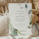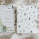 Entra num mundo de beleza delicada com este convite de casamento à aquarela, perfeito para um casal que procura uma mistura de elegância e encanto natural. O convite apresenta um sofisticado conjunto de folhagem aquosa, com folhas em tons de sábio, verde eucalipto e prata macia, acentuadas elegantemente por speck de ouro falso. Um arco sutil de brilho do ouro cria um ponto focal único, enquadrando os nomes dos casais e os detalhes de seu dia especial. Esse convite, com sua sensação orgânica e uma dica de brilho, promete um evento de casamento cheio de romance e encanto.