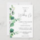 Este design apresenta uma folhagem de eucalipto botânica verde-aquosa. Personalize com seus detalhes de casamento.
