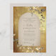 Convites Casamento de Folhagem Geométrica Dourada e bege Me