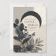 Defina um tom místico e sofisticado para sua celebração com este dramático convite de casamento celeste avant-garde. O design é uma colagem magistral de formas e texturas abstratas em uma paleta monocromática impressionante. As camadas de fundo são painéis ricos, manchados de bege claro e cinza empoeirado, dando-lhe uma fundação tátil e sofisticada. O foco central é uma lua crescente preta e ousada que obscurece parcialmente um grande círculo de tom claro, criando um ponto focal celeste poderoso para o seu texto. Essa estrutura geométrica é dramaticamente sobreposta por um arranjo exuberante de elementos botânicos escuros e sombrios. A folhagem é renderizada em preto profundo, cinza carvão e tons sépia desbotados, apresentando folhas largas e delicados ramos de flores escuras que criam um efeito de sombra de alto contraste. Toques sutis de textura em dourado ou cobre falso espiam pelo arranjo, adicionando um brilho luxuoso. Esse estilo abstrato moderno é perfeito para casais que planejam um casamento noturno, uma recepção sofisticada em um museu ou qualquer evento que abrace uma estética dramática, artística e não convencional. Esse design é perfeito para convites de casamento modernos, anúncios de festa de noivado celeste, convites para eventos botânicos escuros ou papelaria para festas de cocktails sofisticadas. O estilo artístico único e a paleta de cores dramáticas tornam esse design uma excelente opção para o