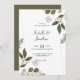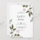 Convite elegante e simples com folhas de aquarela e flores delicadas