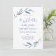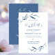 Este Cartão de Convite para Casamento de Azul e Branco Deixa o Casamento, projetado com folhas azuis de cor aquosa e fluentes em um fundo branco. O texto inclui: Nomes de Cheio, data de casamento, hora, local e endereço da noiva e do noivo. O texto inverso inclui: Local e Horas de Recepção em um fundo azul correspondente com texto branco. Para personalizar, basta inserir seus detalhes em nosso modelo fácil, substituindo o texto de exemplo. Certifique-se de ver a Coleção de Casamentos de Folhas Azul e Branco completa para cartas e acessórios correspondentes.