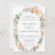Este convite para o casamento de música apresenta um belo pêssego com aquarela, rosa, rosa de marfim e flores de hydrangea e coroa verde com detalhes delicados de ouro. Personalize-o com seus detalhes de forma fácil e rápida, basta pressionar o botão personalizar para reorganizar e formatar o estilo e o posicionamento do texto.