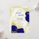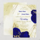 Belo convite para o casamento, com flores azuis reais e folhas de ouro. São simulados os detalhes do brilho dourado. É adequado tanto para os convites para o casamento como para o noivado. PARA MAIS PRODUTOS CORRESPONDENTES, consulte a coleção acima ou entre em contato comigo