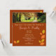 Lindos convites para um casamento outono ou outono. Totalmente personalizável. Adicione seus próprios detalhes em minutos. Atualmente personalizado para um casamento, mas também pode ser usado para uma celebração de noivado. Imagem fotográfica deslumbrante de árvores no outono fazer uma cobertura sobre um caminho de floresta que recua até a distância. Imagens de folhas estilizadas do outono, na frente e atrás. Cada convite vem completo com um envelope. Este design de convite também está disponível em outras combinações de cores.