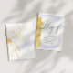 A nossa coleção "Casamento de folha de ouro de água" apresenta uma suave camada de água azul com uma borda de folha de ouro combinada com uma serifa elegante e um roteiro manuscrito personalizado adequado para as celebrações do casamento durante todo o ano. Procure na nossa loja uma suíte de casamento e mais itens pessoais e comerciais desta coleção.