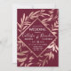 Este convite formal do Casamento é composto por folhas florais elegantes, bonito e imprimidas de folha de ouro rosa, desenhadas à mão, num simples fundo vermelho de burlu. É o design perfeito para a bela e moderna noiva e noiva. Complemente seu evento com classe e estilo com estes convites botânicos. Para alterar a cor do texto ou o clique em segundo plano, clique no botão "personalizar" para obter mais opções. ***NOTA DE DESIGN IMPORTANTE: Para qualquer solicitação de design personalizada, como solicitações de correspondência de produtos, alterações de cor, mudanças de posicionamento ou qualquer outra solicitação de alteração, clique no botão "CONTACT" ou envie um e-mail ao designer diretamente em lafemme.art@gmail.com. Você pode até enviar um e-mail para ela solicitando um design completamente personalizado e novo.