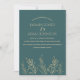 Simples e Mínimo Emerald Green e Dourado deixa o convite para casamento. Imprime estigmaticamente seus convidados de casamento com este simples, mas elegante, verde-escuro com folhas de ouro convite para casamento, com um conjunto de lindas folhas de flor-de-ouro colocadas sobre um fundo verde-esmeralda moderno. Este convite de casamento dá uma sensação moderna e minimalista, perfeita para qualquer casamento botânico moderno. Este convite de casamento mínimo, verde-escuro e dourado irá dar o tom para qualquer cenário de casamento rústico e subestimado, rodeado por delicadas folhas brancas ou ouros ou flores silvestres, e decor de casamento verde ou dourado. Uma adição perfeita a qualquer celebração de casamento bestial. O Coletivo de Domingo © por Rachel Hannah Gee