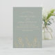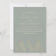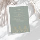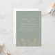 Simples Mínimo Verde Sábio e Dourado Deixa O Convite De Casamento. Imprime estigmaticamente seus convidados de casamento com este simples, mas elegante, verde-musgo com folhas de ouro convite para o casamento, com um conjunto de lindas folhas de flor silvestre de ouro sobre um moderno fundo verde-sábio. Este convite de casamento dá uma sensação moderna e minimalista, perfeita para qualquer casamento botânico moderno. Este convite de casamento mínimo, sábio e ouro irá dar o tom para qualquer cenário de casamento rústico e subestimado rodeado por folhas brancas ou ouros delicadas ou flores silvestres, e decor de casamento verde ou dourado. Uma adição perfeita a qualquer celebração de casamento bestial. O Coletivo de Domingo © por Rachel Hannah Gee
