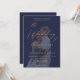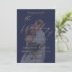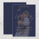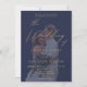 O Convite Blue Photo Wedding para Marinho de Caligrafia Dourada romântica apresenta elegante caligrafia dourada sobre um sofisticado fundo azul marinho. A design inclui uma foto do casal no verso, adicionando um toque pessoal. Este convite é perfeito para aqueles que buscam uma estética clássica, mas moderna, para o seu casamento, combinando elegância eterno com estilo contemporâneo. É ideal para eventos de casamento formais e de grande escala e transmite uma sensação de romance e sofisticação.