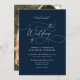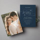 Convites Casamento de Foto Azul do Marinho de Script Minima
