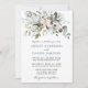 O Cartão de Convite para Casamento de Cores Botânicas de Aquarela Elegante Moderna inclui folhas de eucalipto, folhagem botânica verde, folhas azuis empoeiradas, delicadas flores rosadas e esbranquiçadas cor-de-rosa e outras belas culturas botânicas. Foto de volta.