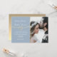 Convite empoeirado ao casamento azul, com um layout minimalista com detalhes românticos de corda de ouro e espaço para sua foto de casal. Personalizado e eterno — perfeito para casamentos modernos. Para ajudar a personalizar, sinta-se à vontade para enviar um e-mail para bpkolman@gmail.com.