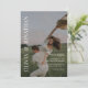 Design apresenta uma fotografia que pode personalizar com a camada preta de sombra. Nomes no lado esquerdo e detalhes do dia do casamento no canto inferior direito.