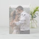 Convite de casamento de foto com QR Code elegante com detalhes de caligrafia em letra cursiva e texto clássico sobreposto em uma foto vertical de retrato na frente. O verso tem uma foto em sangramento total e detalhes de RSVP. Clique no botão de edição para personalizar este design.