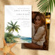 Este convite de casamento elegante de aquarela de praia tropical pode ser personalizado com suas informações em tipografia moderna e uma foto especial no verso. Projetado por Thisisnotme©