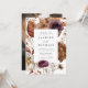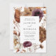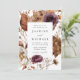 Este convite para o casamento floral rústico captura a essência da estação de outono romântica com tons quentes de marsala, roxo, creme, marfim, marrom e laranja-ferrugem. O design captivador combina sem falhas a beleza das flores do outono e da folhagem delicada, trazida à vida através da arte das aquarelas, criando uma marca de conservação verdadeiramente mesmante para o seu dia especial. A parte traseira do convite para o casamento outono exibe a foto vertical do noivado com sangramento de cheio. Esta design coordena-se com a nossa coleção de casamentos Florais Rustic Autumn.