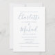 Apresentando nomes de estilo de assinatura, este elegante convite de casamento azul empoeirado pode ser personalizado com todas as suas informações especiais sobre o dia do casamento na frente e sua foto, detalhes do site do casamento e código QR no verso. Projetado por Thisnotme©