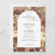 Celebre o seu amor com este convite de casamento floral elegante para outono, com flores silvestres encantadoras de aquarelas numa rica paleta de outono de terracotta, laranja queimada, burgundy, marrom, creme e amarelo. Um fundo macio define a cena, com uma cobertura branca e nítida e um elegante roteiro de caligrafia moderna que adiciona um toque sofisticado e sua foto no verso. Perfeito para casamentos outono com uma estética rústica, boho ou inspirada na natureza. Ideal para cerimônias de jardim de outono, celebrações boêmicas ao ar livre ou casamentos aconchegantes. Personalize facilmente com os detalhes do seu casamento para criar uma primeira impressão eterno e romântica.