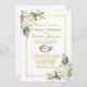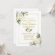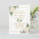 Watercolor Ivory White Floral Greenery Wedding Cartão de Convite para Casamento inclui rosas brancas de creme de marfim e verde botânico. Quadro Dourado, Script Dourado, Foto de volta