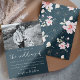 Este belo convite para o casamento floral é uma forma chique de deixar os convidados saberem da sua cerimônia de casamento. Bonito "o casamento de" escrita caligrafia-se sobre um fundo azul escuro com a fotografia do casal, e um padrão de flores branco, rosa e azul, cobrir a parte de trás do cartão.