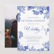 Convites Casamento de Foto Floral de Chinoiserie Azul Elega