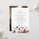 Convites românticos de casamento outono com detalhes de seu casamento exibidos próximo ao topo da design com sotaques modernos de escrita de caligrafia. Um campo de flores de aquarelas rústicas e de folhagem na parte inferior do design em tons de marfim, creme, marsala, burgundy, marrom e laranja-ferrugem. Este design captivador combina sem falhas a beleza das flores do outono e das folhagens delicadas, trazidas à vida através da arte das aquarelas, criando uma verdadeira e mesmerante preservação para o seu dia especial. O convite reverte para exibir sua foto de noivado vertical e sangrada por cheio. Celebre o amor, abraça a estação, e crie memórias que durarão uma vida - ordene o seu convite para casamento de fotos flóricas do outono russo hoje! O design coordena-se com a nossa coleção de casamento Floral de outono Russo.