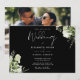Convites Casamento de Foto Floral de Verde Preto e Branco