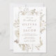 Capture a elegância do eterno do seu dia especial com nosso convite de casamento de fotos inspirado na vintage. Este belo design apresenta um delicado quadro floral de flores de aquarela e folhagem em tons quentes neutros de branco, bege, marfim, ouro e marrom. Acentuado com uma elegante escrita caligráfica, esse convite é perfeito para casamentos românticos que buscam um toque clássico, sofisticado. Mostre a sua foto de noivado vertical favorita na parte de trás do convite. Deixe sua história de amor se desvendar com a graça e charme de uma era passada.