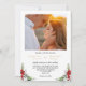 Este clássico convite formal para o casamento de fotos no Natal apresenta um pano de fundo branco limpo e brilhante com letras simples, minimalistas em preto e ouro e sotaques caligráficos manuscritos. Os embelezamentos de belas e clássicas verdinhas verdes e vermelhas de Natal com delicadas características de ouro criam uma estética perfeita de férias de inverno enquanto mantêm uma elegância polida para o seu casamento de Natal ou outro evento especial. Como com todos os nossos designs, se tem alguma pergunta sobre o design ou gostaria de algo especialmente feito para coordenar com o seu casamento, por favor, pergunte.