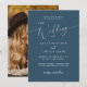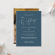 Cartão de modelo de convite de casamento mínimo com texto moderno em um fundo teal. Personalize este convite adicionando suas próprias informações de casamento. Perfeito para qualquer casamento. Você pode adicionar sua foto de noivado no verso.