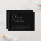 Este convite para casamento moderno tem eterno fundo negro e elegante texto moderno. O primeiro nome é uma escrita manuscrita fluida e o segundo nome é uma fonte serif forte, que dá a este convite o equilíbrio perfeito entre masculino e feminino. No verso, há uma opção para usar uma foto. Adicione um código QR e instruções online do rsvp para fazer deste um convite para casamento moderno.