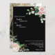 Este design de convite de casamento para fotos negras florais sem cor apresenta belos fundos neutros em chic de preto ou branco com simples tipografia moderna e caligrafia elegante para definir um tom sofisticado para qualquer estilo de evento. Cada produto é embelezado com rosas rosas rosadas e escamosas, cor-de-rosa, bem como fitas de pêssego e de marfim, dispostas com eucalipto e detalhes de folha verde, bem como armações geométricas de ouro de eterno para um aspecto luxuoso. Misture e combine esta coleção coordenadora para uma estética de casamento de sonho personalizada sem esforço para uma grande variedade de estilos casuais e formais. Para mais designs coordenadores, esse design também está disponível em cor-de-rosa pastel e azul marinho. Tal como acontece com todos os nossos design, se tiverem perguntas ou pedidos especiais, por favor, perguntem.