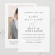 Convite de casamento preto e branco moderno e elegante com e comercial em folha de ouro é chique e sofisticado. A parte de trás tem uma foto e código QR para mais detalhes e opção de RSVP. Ótimo para casamento clássico moderno, casamento vintage e casamento formal. Veja todas as peças correspondentes na coleção. Clique no botão de edição para personalizar este design.