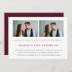 Simples e clássico convite para casamento branco e burgando sólido para trás do cartão. Este anúncio moderno é uma forma elegante de informar os hóspedes sobre a sua próxima celebração de casamento, e apresenta duas fotos e uma combinação de tipografia negra e burgundy.