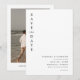 Essa data de salvamento apresenta uma dupla de cores brancas e cinzas em conjunto com um layout moderno minimalista. É o convite perfeito para seu casamento limpo e sofisticado clássico ou industrial. Adicione facilmente uma foto à parte de trás, junto com o site do seu casamento, para um toque pessoal.