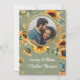 Uma elegante explosão de girassóis contra um pano de fundo verde sábio cria uma exibição impressionante e atraente para seus detalhes de casamento. Apresentando delicada caligrafia de script e um lugar para personalizar com você fotos para esse toque especial extra. Perfeito para Primavera, Verão e Casamentos outono!
