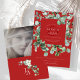Nosso convite de casamento Foto Simples de Inverno Vermelho Folha Verde captura a essência da beleza botânica e do encanto rústico. Apresentando delicadas folhas de eucalipto e verde elegante, num fundo vermelho impressionante, esta design com seu elegante monograma de iniciais de casal é perfeita para seu inverno, natal ou casamento inspirado em boho. O filme foliar acrescenta um toque de elegância da natureza, criando um pano de fundo sereno e sofisticado para o seu dia especial. Personalize com sua foto para fazer este convite exclusivamente seu.